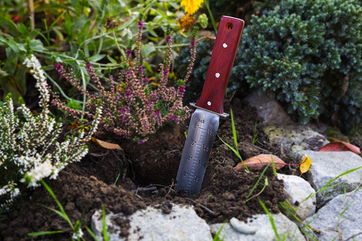 - Позначки градації на лезі полегшують вимірювання глибини, полегшуючи посадку квіткових цибулин у сад справжнє задоволення. li>