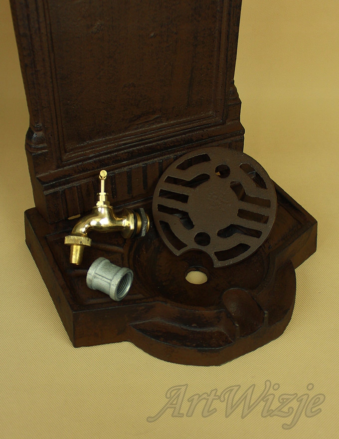 Чавунний настінний садовий злив (раковина) з темно-коричневим (патинованим) краном.