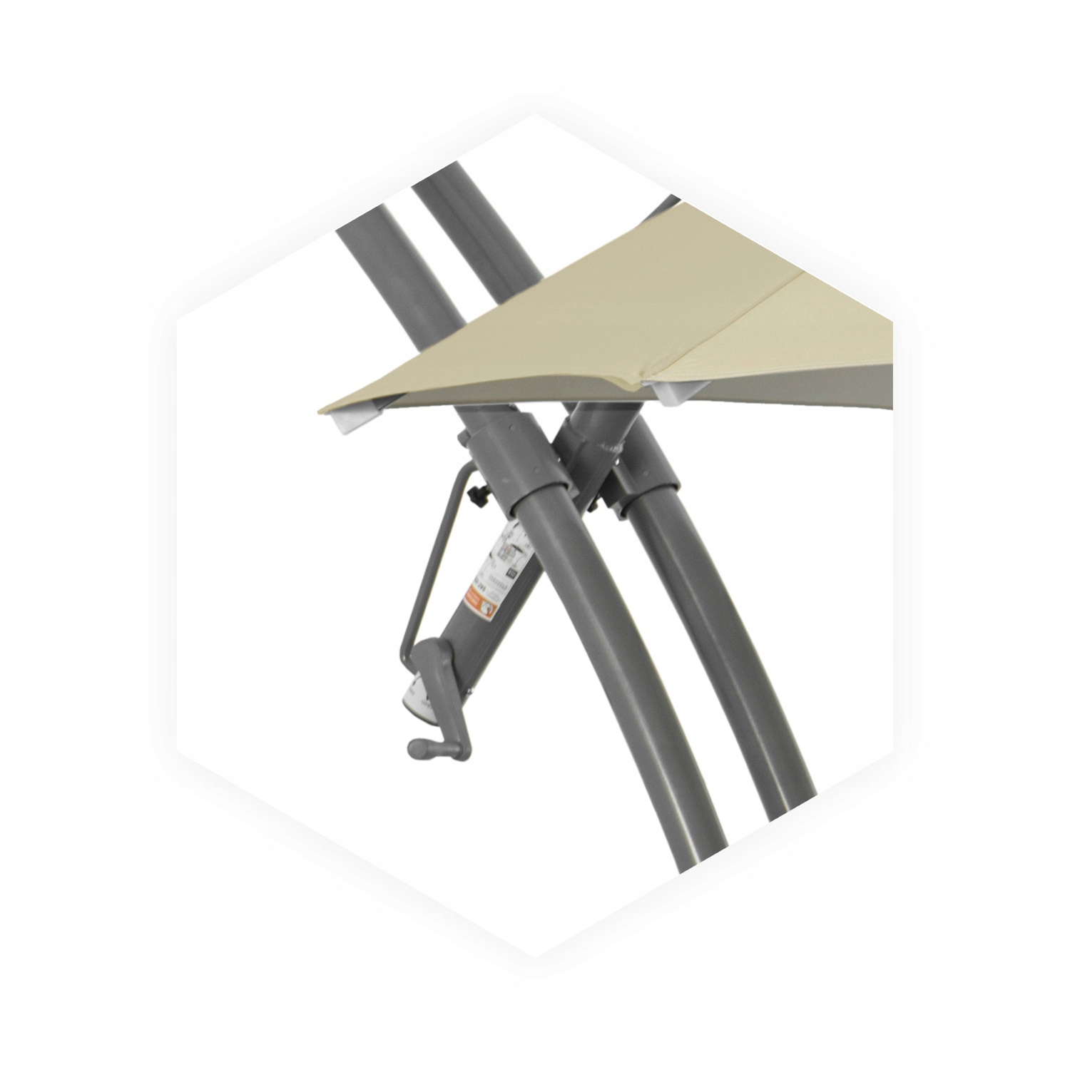 Функціональна та швидка система для відкривання та закривання навісу парасольки за допомогою рукоятки. Кривошип не є стаціонарним, що підвищує безпеку та практичність і знижує ризик пошкодження парасольки.
