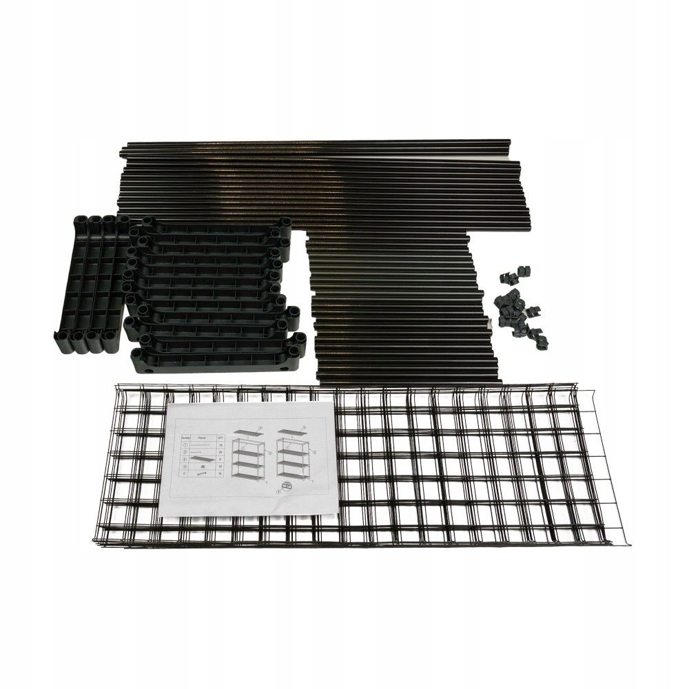 В набір входять дві полиці та всі монтажні елементи: труби та рамні з'єднувачі, полиці та інструкції.
