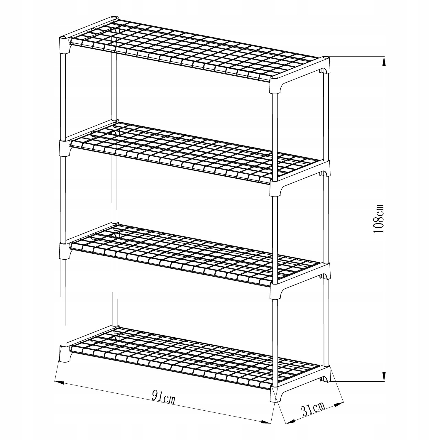 Ця практична садова полиця з розмірами 90x30x108 є ідеальним рішенням для зберігання інструментів, квіткових горщиків, садових аксесуарів або демонстрації рослин. Компактний дизайн робить його ідеальним для будь-якого саду, тераси, балкона чи теплиці. Простий і сучасний вигляд, який легко поєднується з оточенням і додає функціональності будь-якому зовнішньому простору. Одна полиця має 4 полиці з дротяної сітки.