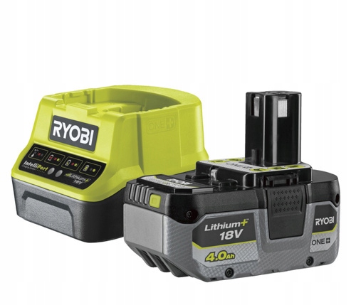 набір акумуляторів і зарядних пристроїв для акумуляторних електроінструментів Ryboi серії Ryobi ONE+. У набір входить акумулятор 18 В ємністю 4,0 А·год та універсальний зарядний пристрій.