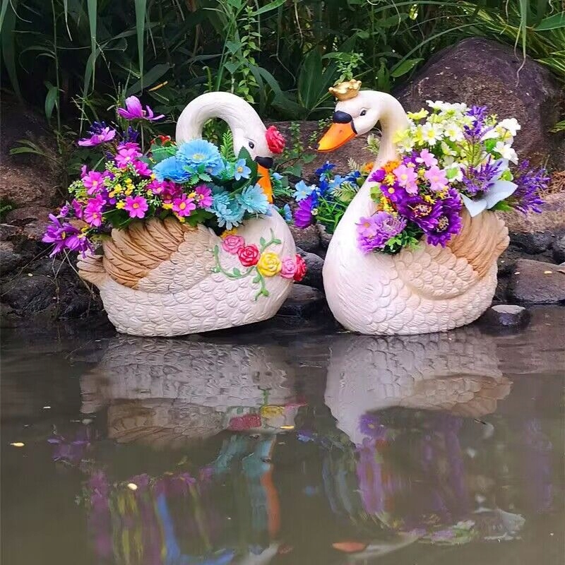 Садова прикраса лебідь великий горщик 1 шт