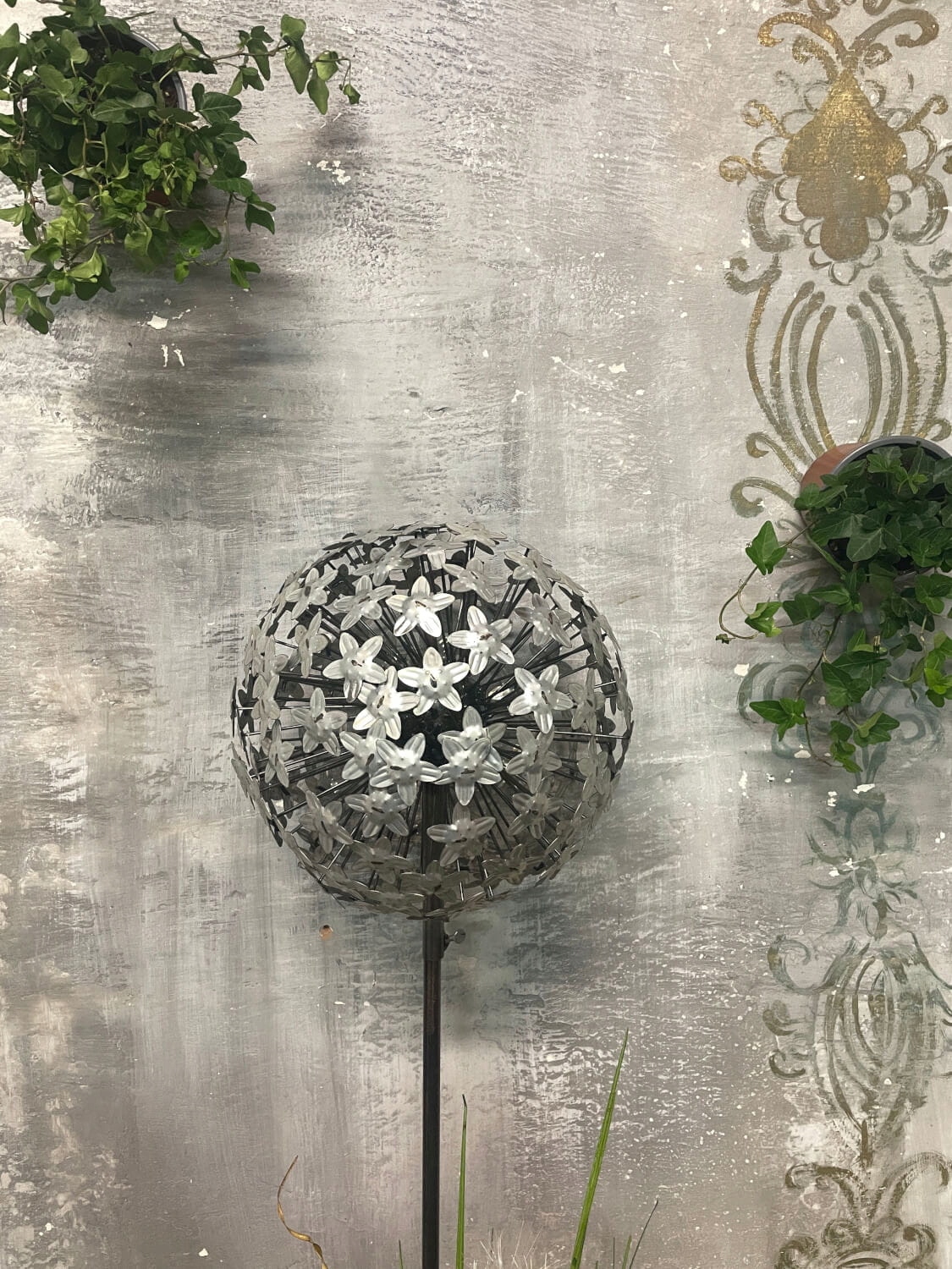 Металева стеблинка часнику для саду – білий квітковий декор
