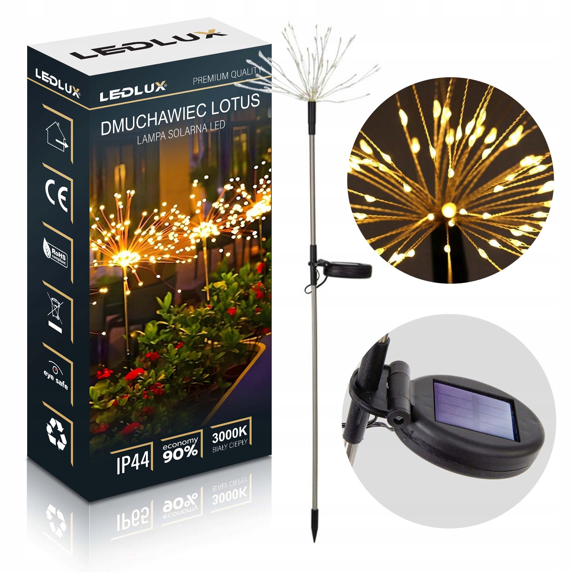 - лампа складається з кількох десятків делікатних світлодіодних волокон, які створюють ефективне світло "букет", що нагадує процвітаюче кульбаве. Це гарантує унікальну атмосферу в саду та чудовий візуальний ефект після темряви.
