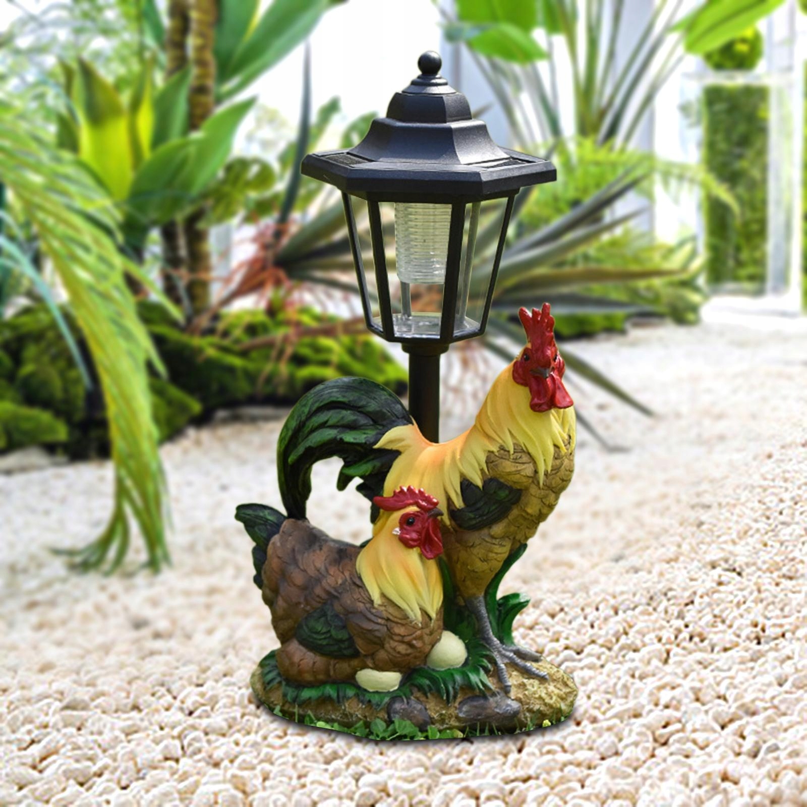 Садова статуя Сонячна лампа, стійка до погодних умов красива смоляна курка