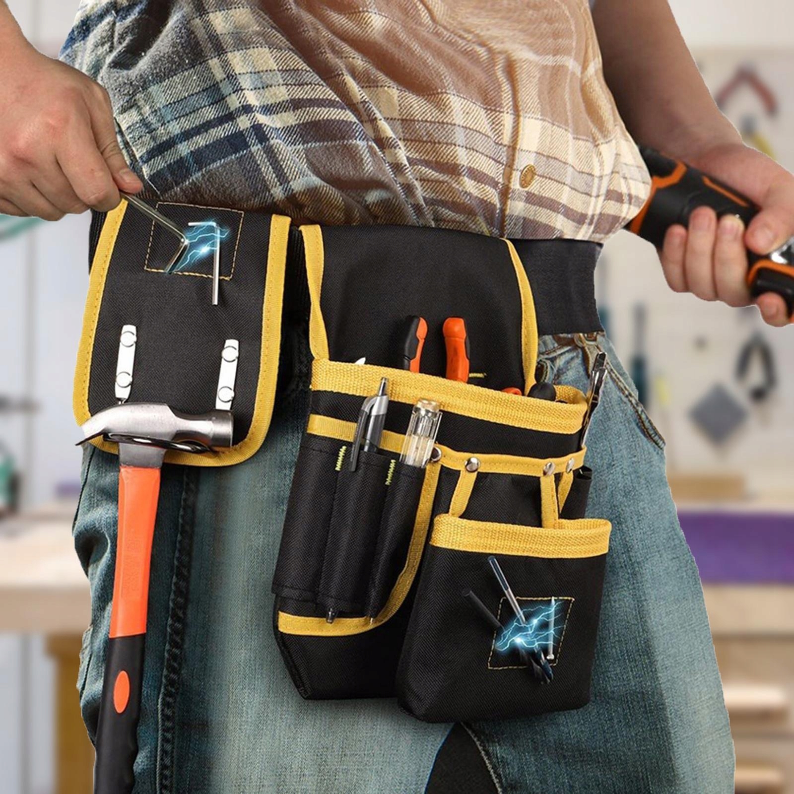 [гнучкий застосування]: мішечки рухаються по пояс, що забезпечує більшу гнучкість під час роботи. Незалежно від того, чи є ви професійним столяром, електриком, техніком, будівельним працівником, ландшафтним архітектором, гідравлічним, або ви просто виконуєте проекти вдома - цей ремінь інструментів полегшує завдання.