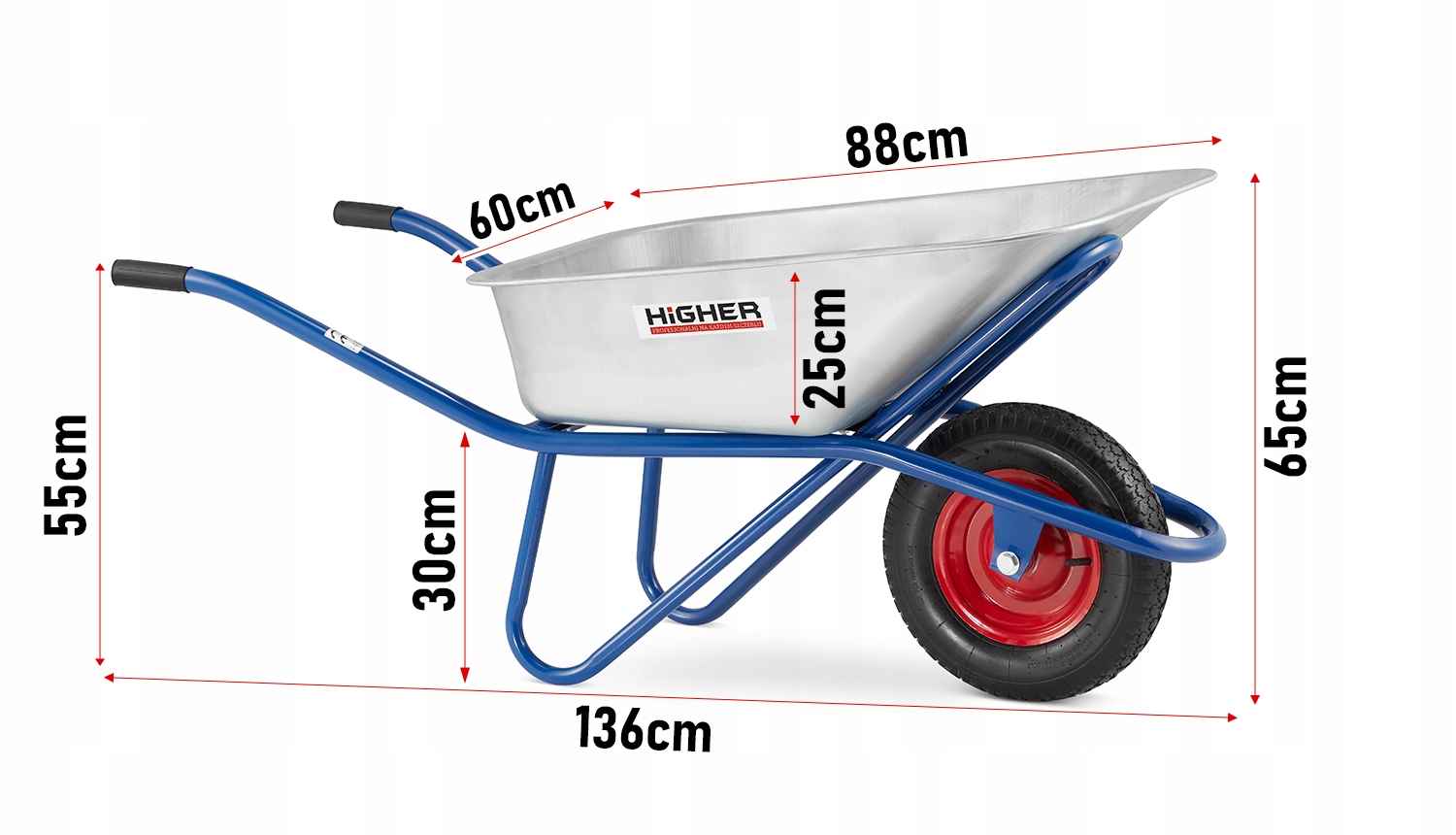 Обираючи тачку HIGHER, ви обираєте товар із найкращим співвідношенням високої якості та привабливої ціни. Чому така ціна? Тачки є одним з наших флагманських продуктів, які виготовляються на нашій компанії. Щоб гарантувати збереження нашої лідируючої позиції, ми докладаємо всіх зусиль, щоб перевести договірні закупівельні ціни виробничих матеріалів або ціни доставки на найкращу ціну продукту для вас. Ми займаємося цим багато років. Запрошуємо вас приєднатися до групи задоволених клієнтів. Пам’ятайте, що як виробник ми маємо доступ до кожної деталі тачки, тому ми також можемо допомагати протягом усього післяпродажного періоду.