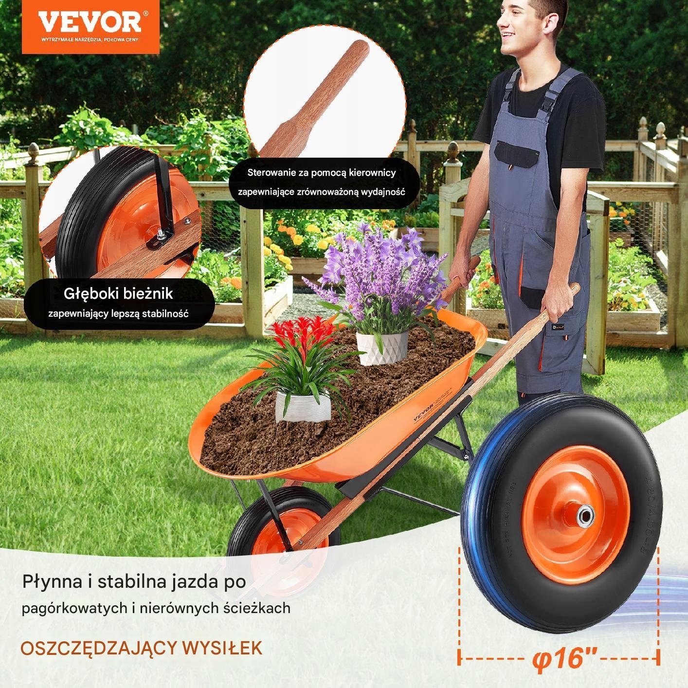 Наш садовий візок має ергономічний дизайн із м’якою ручкою для легкого керування та балансу. 40-сантиметрова поролонова шина з глибоким протектором забезпечує відмінне зчеплення на будь-якій місцевості, що робить її ідеальною для використання в садах, на подвір’ях, на фермах і складах.