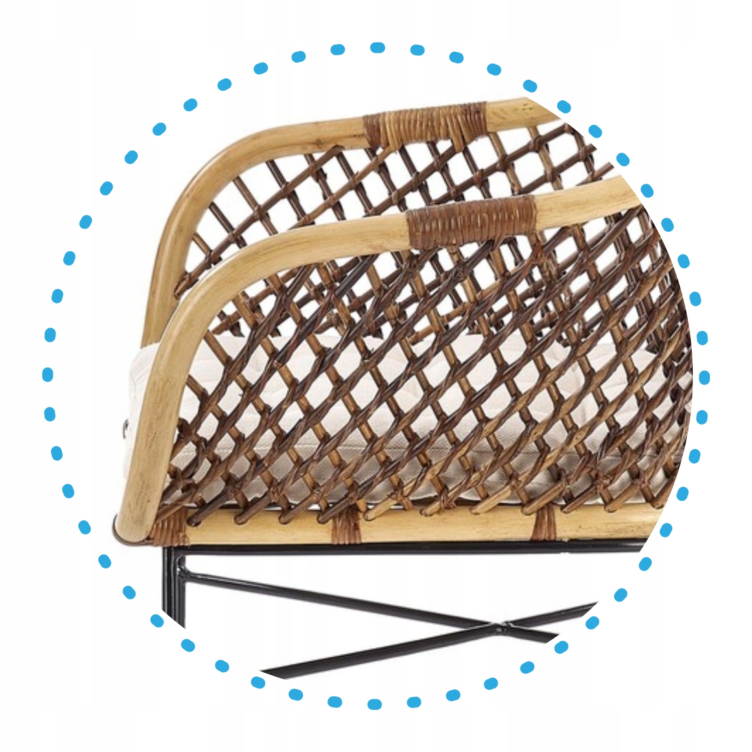 - Оббивка: ротанг Натуральний, Метал, Тканина