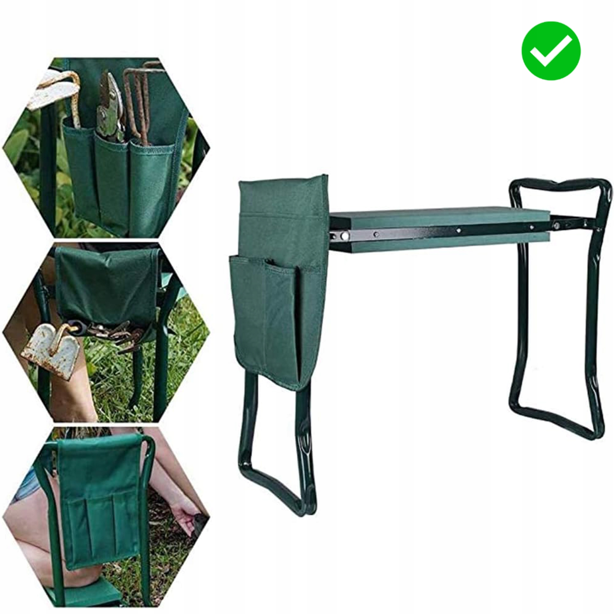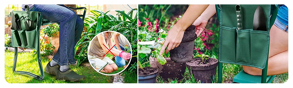 - Включно з сумкою для інструментів! Крісло має бічну сумку з кишенями для всіх ваших улюблених садових інструментів, тому вони завжди під рукою.