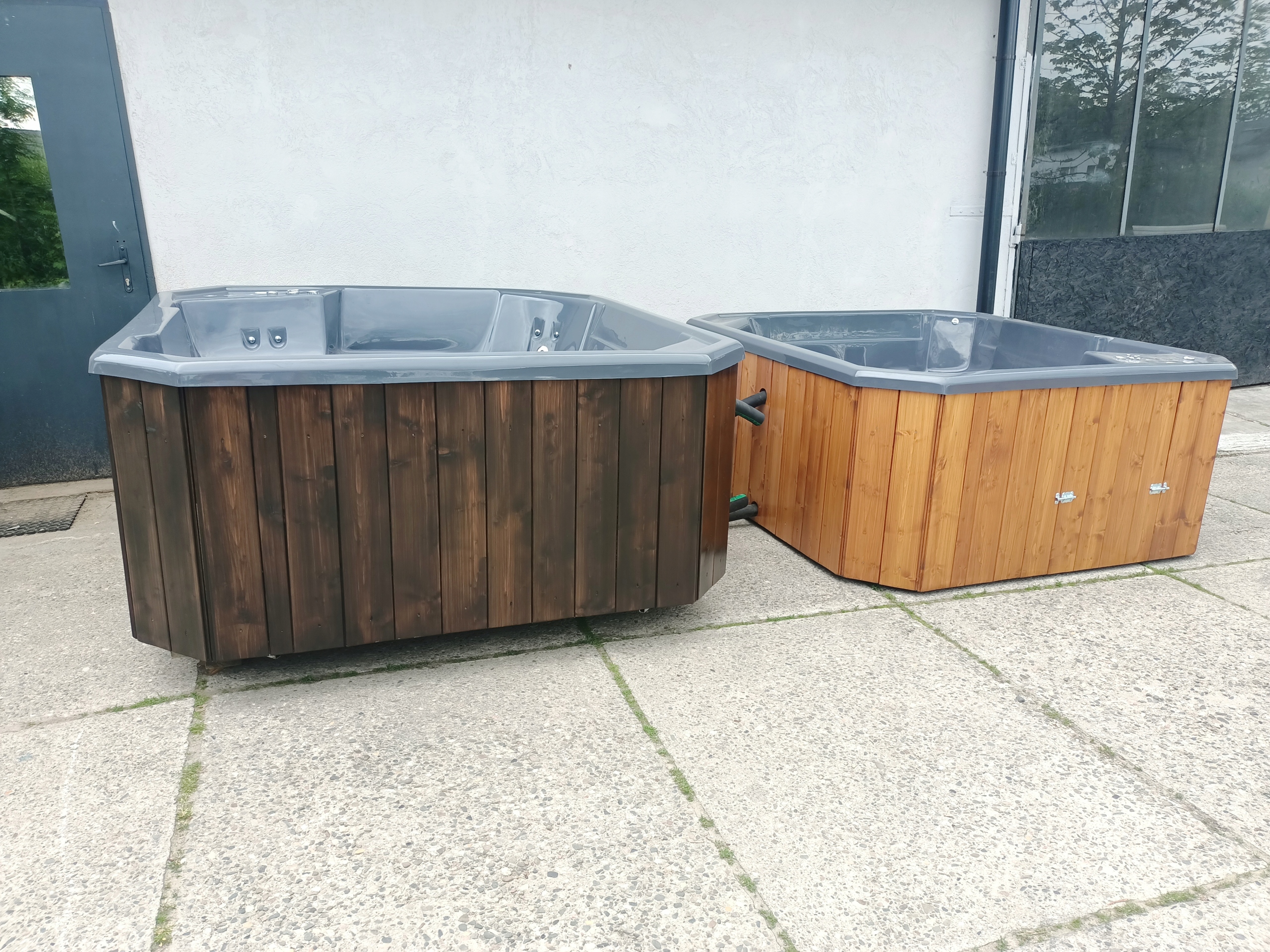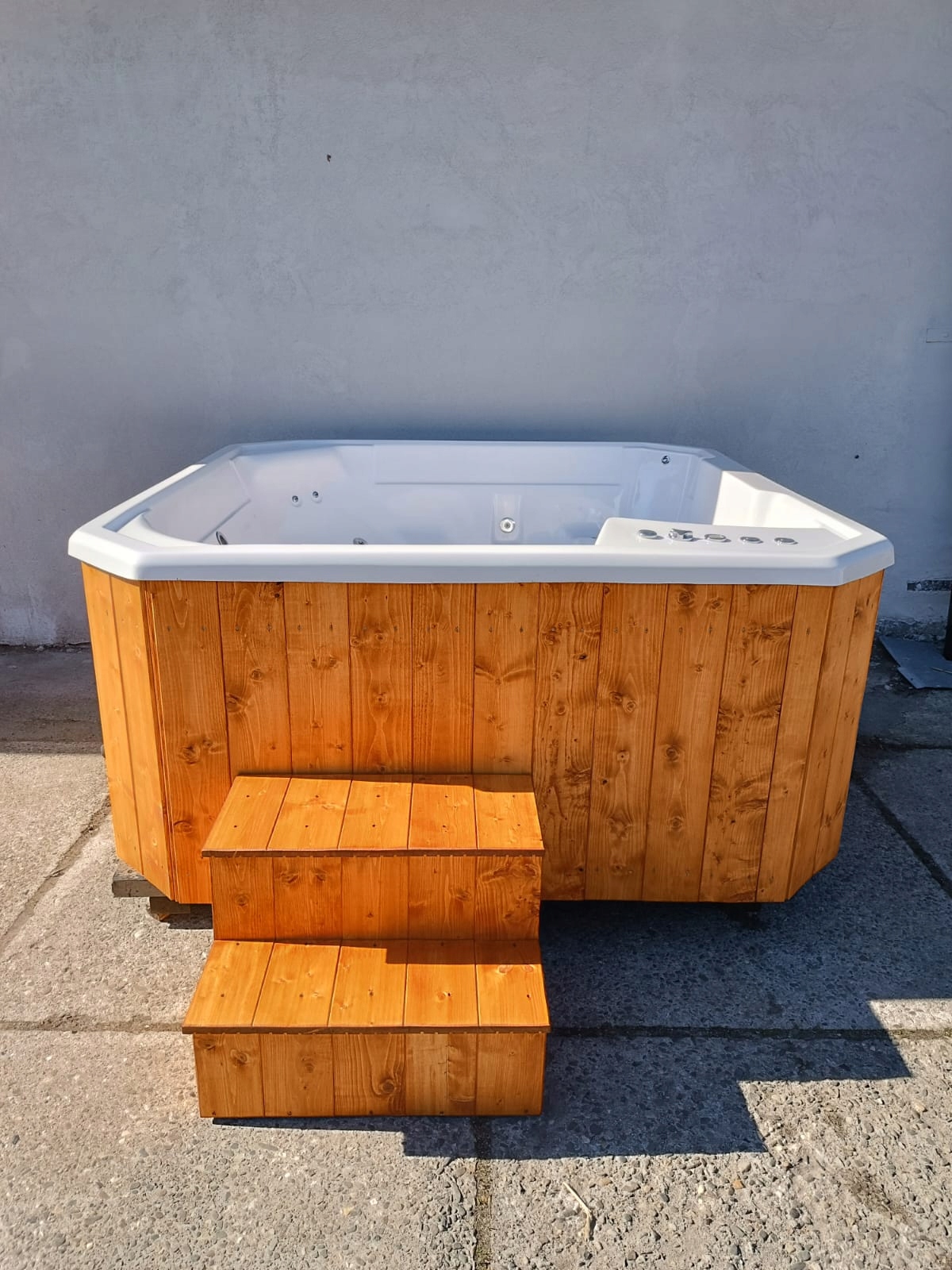 Гармасажна ванна встановлена на міцному каркасі з товстої просоченої будівельної деревини, що забезпечує довговічність і стійкість конструкції.