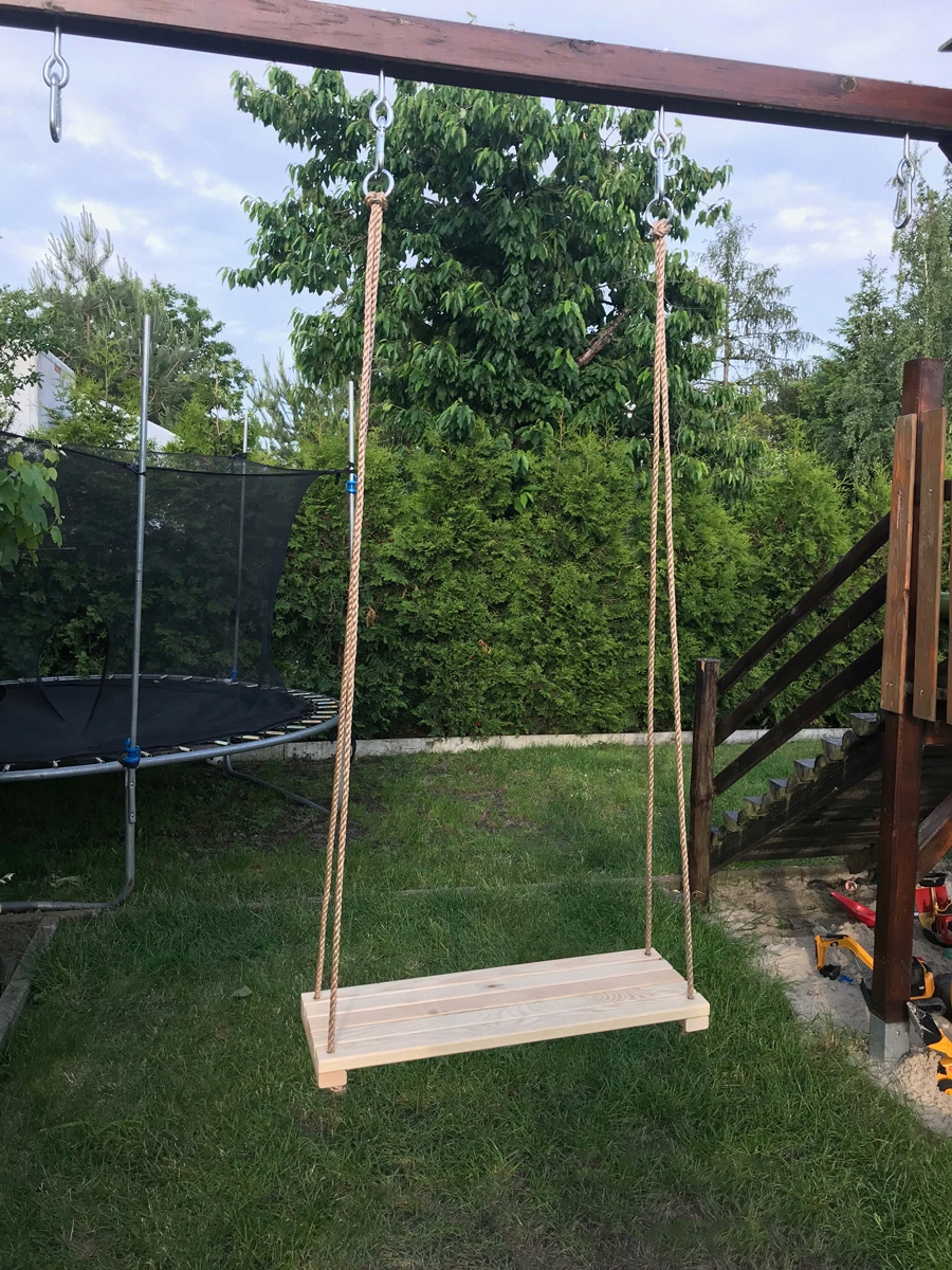 Гойдалка масивна, виготовлена з сировини найвищої якості (сосна). Дорослі можуть використовувати його без жодних побоювань. Усі краї ретельно закруглені.