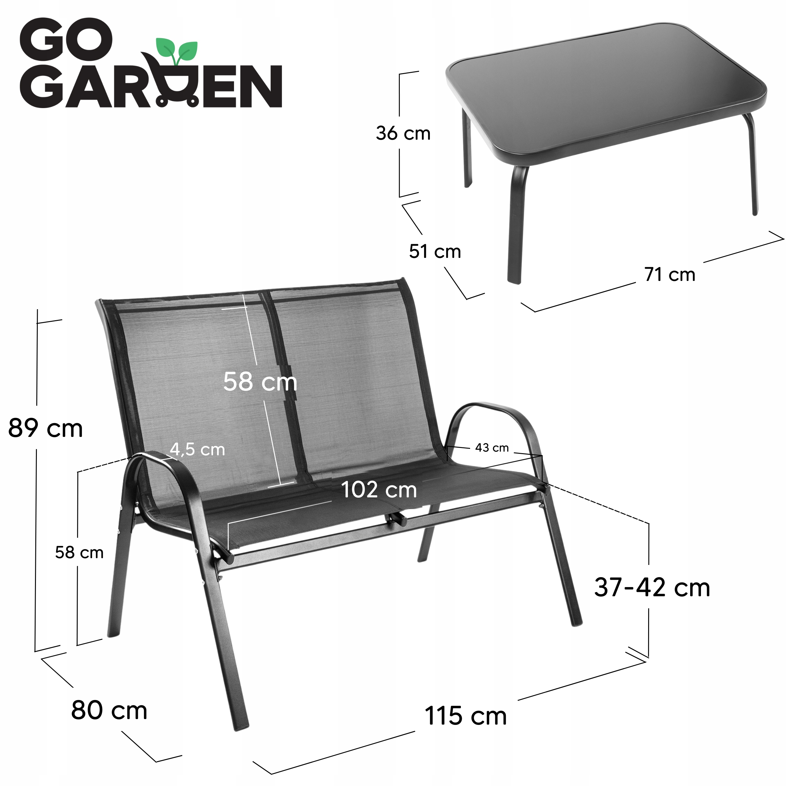 ☘ Набір садових меблевих стіл + диван + 2 чорні металеві стільці