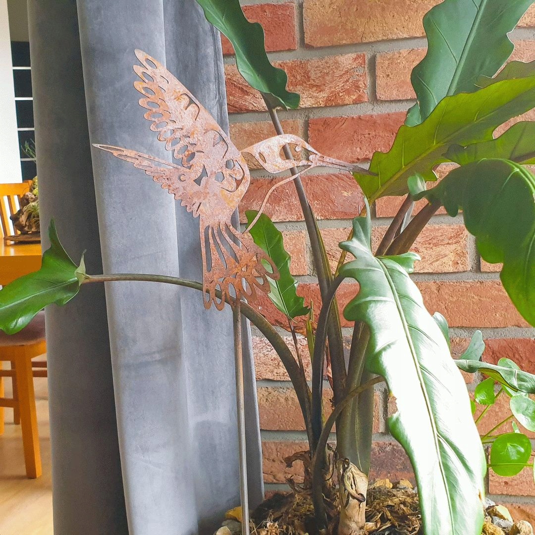 Перетворіть свій сад на витвір мистецтва за допомогою нашого унікального орнаменту колібрі! Цей металевий елемент кольору іржі виглядає так, ніби його взяли з природи та перенесли прямо у ваш сад. Прикрашений тонкими деталями, такими як крила та ніжні лінії, цей декор викликає уяву та додає свіжості будь-якій зеленій зоні. Ця прикраса ідеально підходить для любителів природи та чудово виглядатиме на вашій терасі, балконі чи в саду. Поєднайте його з іншими елементами тієї ж серії та створіть гармонійний зелений рай. Ця садова біжутерія – ідеальний подарунок для коханої людини, яка любить оточувати себе красою природи.
