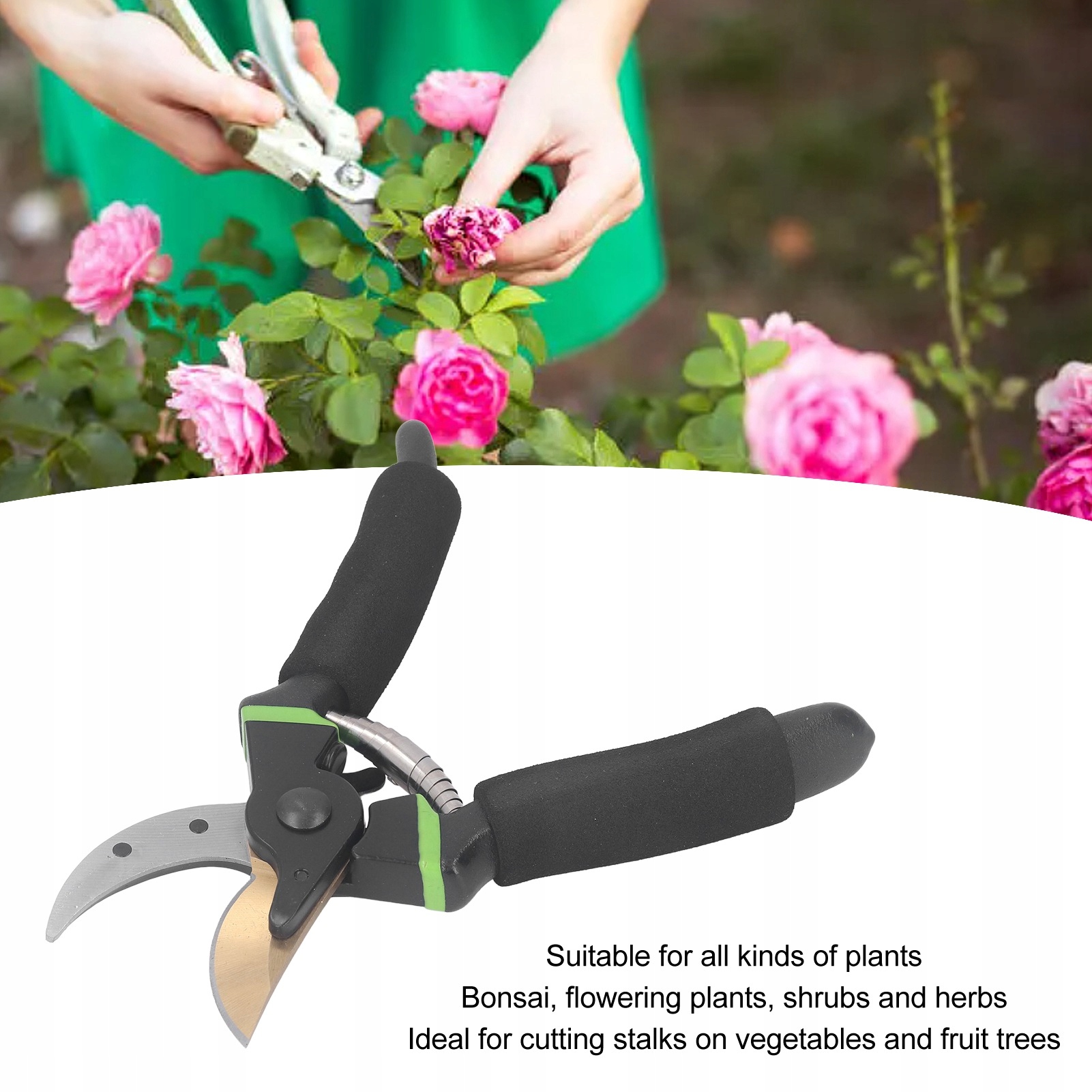 1, надзвичайно гострі та міцні: леза секаторів виготовлені з чудової вуглецевої інструментальної сталі SK5 із покриттям Ti. Висока міцність і зносостійкість, дуже міцний і виразний. Він може легко та ідеально задовольнити ваші потреби в стрижці. Зробіть чисті надрізи на стеблах і гілках діаметром до 3/4 дюйма. 2, ЗРУЧНІ У КОРИСТУВАННІ: леза та ручки, а також потовщена нековзна губка мають ергономічний дизайн. Легкий і зручний у використанні. Вони дозволять довго працювати в саду, не відчуваючи втоми. Садові ножиці стануть чудовим доповненням до ваших садових інструментів 3, 8,6-дюймові САДОВІ НОЖИЦІ: безпечні та зручні у використанні, зменшують навантаження на руки та ідеально підходять для стрижки та обрізки протягом тривалого періоду часу 4, ДЛЯ ВАЖКОГО САДІВНИЦТВА ГРУНТУВАННЯ: легко наносити Використовуйте роботу, ці секатори також мають запобіжні замки, які можна приєднувати та від’єднувати однією рукою, що є чудовим способом уникнути випадкових травм. 5, ВІДПОВІДНИЙ СЦЕНАРІЙ: садові ножиці підходять для всіх видів рослин, таких як бонсай, квітучі рослини, кущі та трави, а також ідеально підходять для обрізання стебел овочів і фруктових дерев