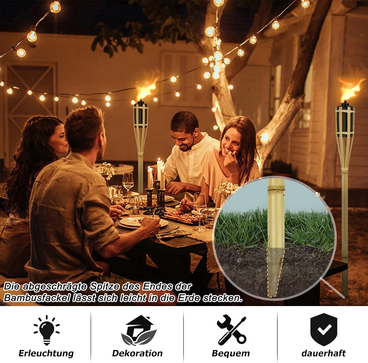 Цей елегантний бамбуковий факел важить лише близько 100 грам для зовнішнього освітлення, що робить його легшим, ніж металеві факели і дуже легко переносити.