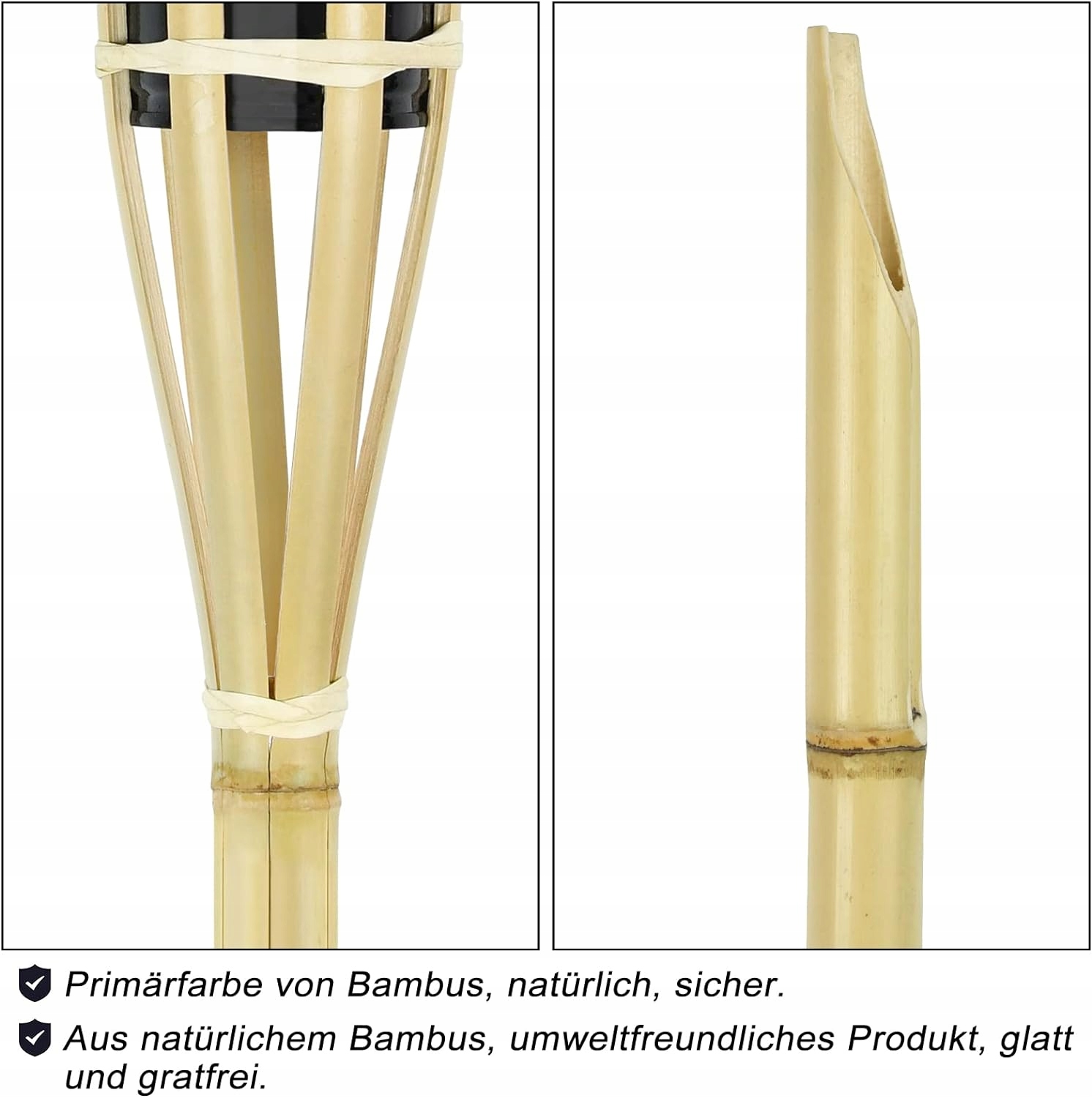 Цей бамбуковий факел виготовлений з природного дикого бамбука, який спалений, копчений і випарений у печі для вугілля, так що він менш сприйнятливий до форми та зменшує ризик тріщини бамбука.