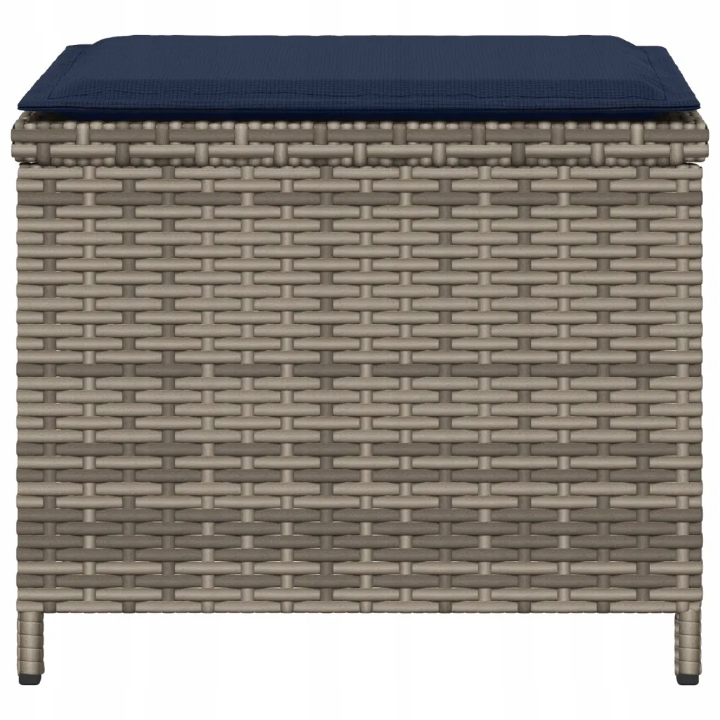 Садові ротангові поліетиленові табурети, сірі з темно-синіми подушками, 40x40x35 см, 4 шт.
