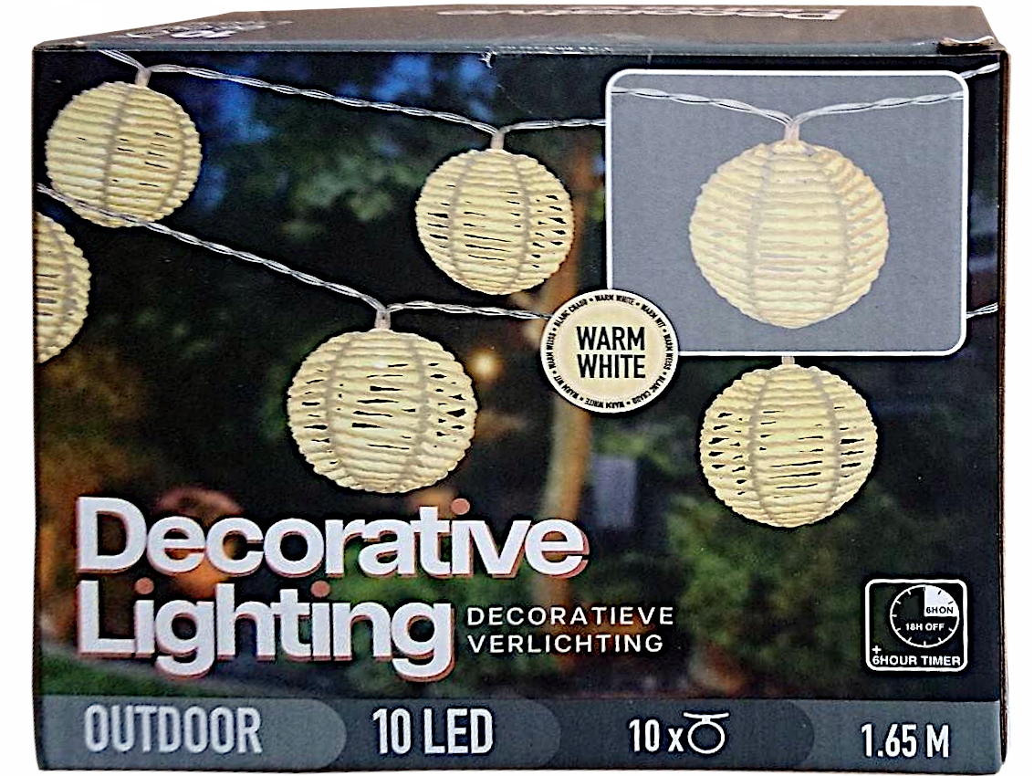 - Гірлянда з 10 ротанговими світлодіодними ліхтарями