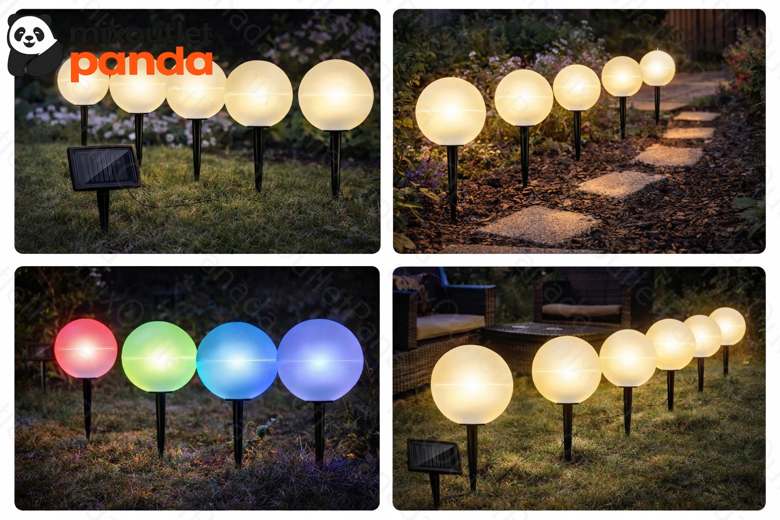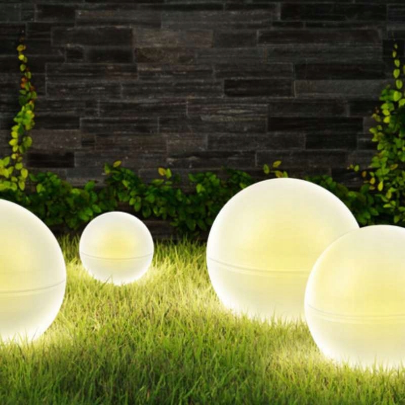 Кулі випромінюють тепле біле світло, а додатковою перевагою є можливість змінювати кольори, що дозволяє регулювати освітлення відповідно до настрою та події. Суцільні шипи дозволяють легко встановлювати безпосередньо в землю.