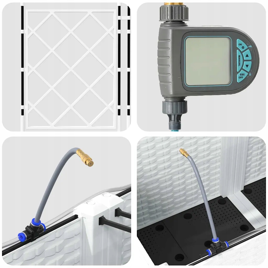 - Інтегрована система зрошення: завдяки передовій системі зрошення ця садова кашпо усуває дилеми поливу. Використовуючи вбудовані канали, він ефективно розподіляє воду безпосередньо до коренів рослин, забезпечуючи їм достатню вологість, одночасно зменшуючи витрати води та підтримуючи більш здорове зростання.