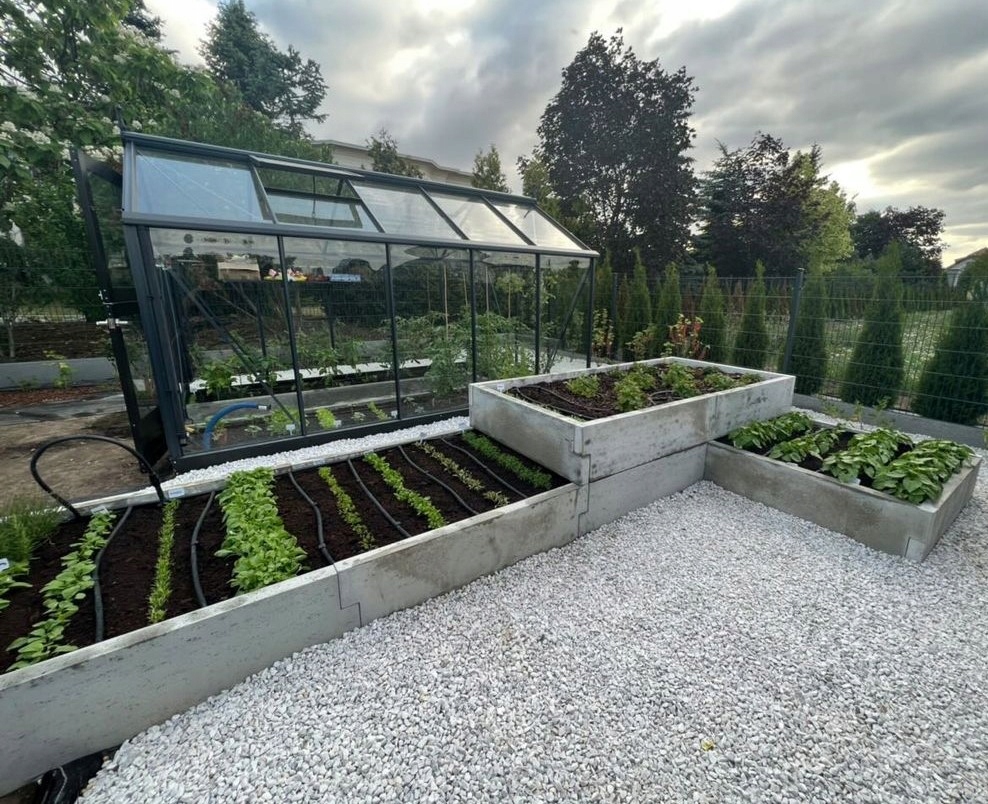 Оскільки город зроблений з бетону, він дуже міцний і прослужить багато років, на відміну від дерев'яних клумб, які з часом псуються. Ящики для овочів, які ми пропонуємо, виготовлені з бетону, що імітує дерево або травертин, що робить їх надзвичайно естетичними.