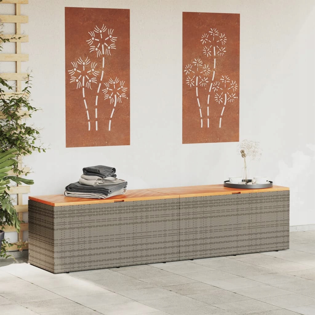 - Plastic: Rattan PE, powder coated steel, oil-massaged acacia wood