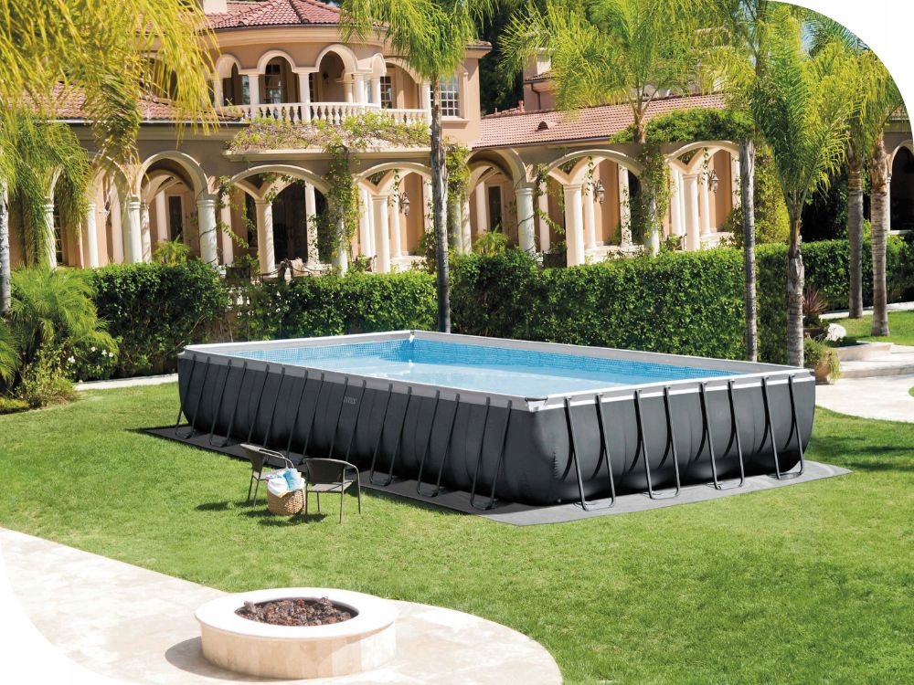 1. КАРКАСНИЙ БАСЕЙН-Прямокутний каркасний басейн Ultra XTRвід Intex, розмір975 см x 488 см x 132 см- місткість 54 368 л. Виробник вказує, що він наповнений водою, на максимальний рівень 90%. Час складання займає приблизно 90 хвилин.