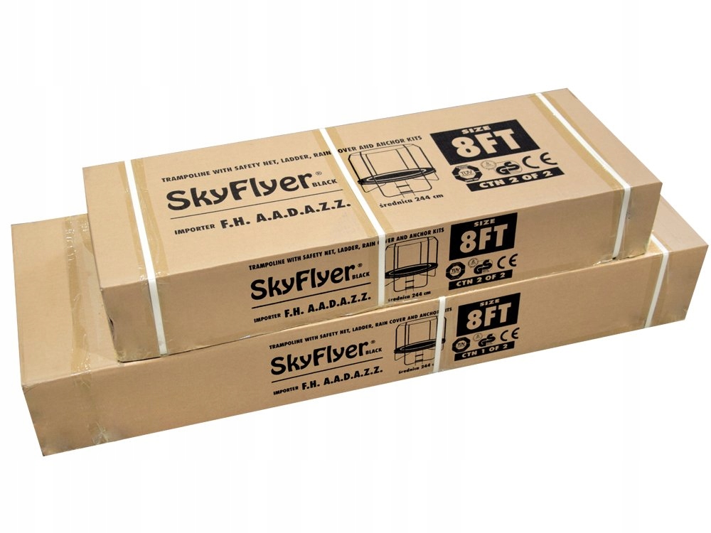 Батут поставляється в двох коробках. У магазині «Йокомісіада» представлений широкий вибір найякісніших батутів SkyFlyer, обов’язково ознайомтеся з ними.