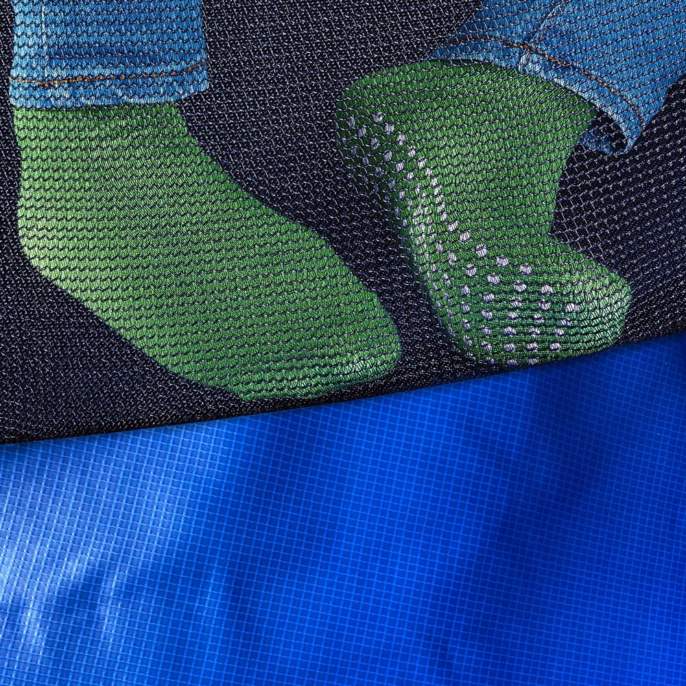 ✔️Міцний еластичний килимок - основний килимок виготовлений з міцного та еластичного пластику з високою щільністю 275 г/м2, що робить стрибки на батуті безпечними та комфортними.