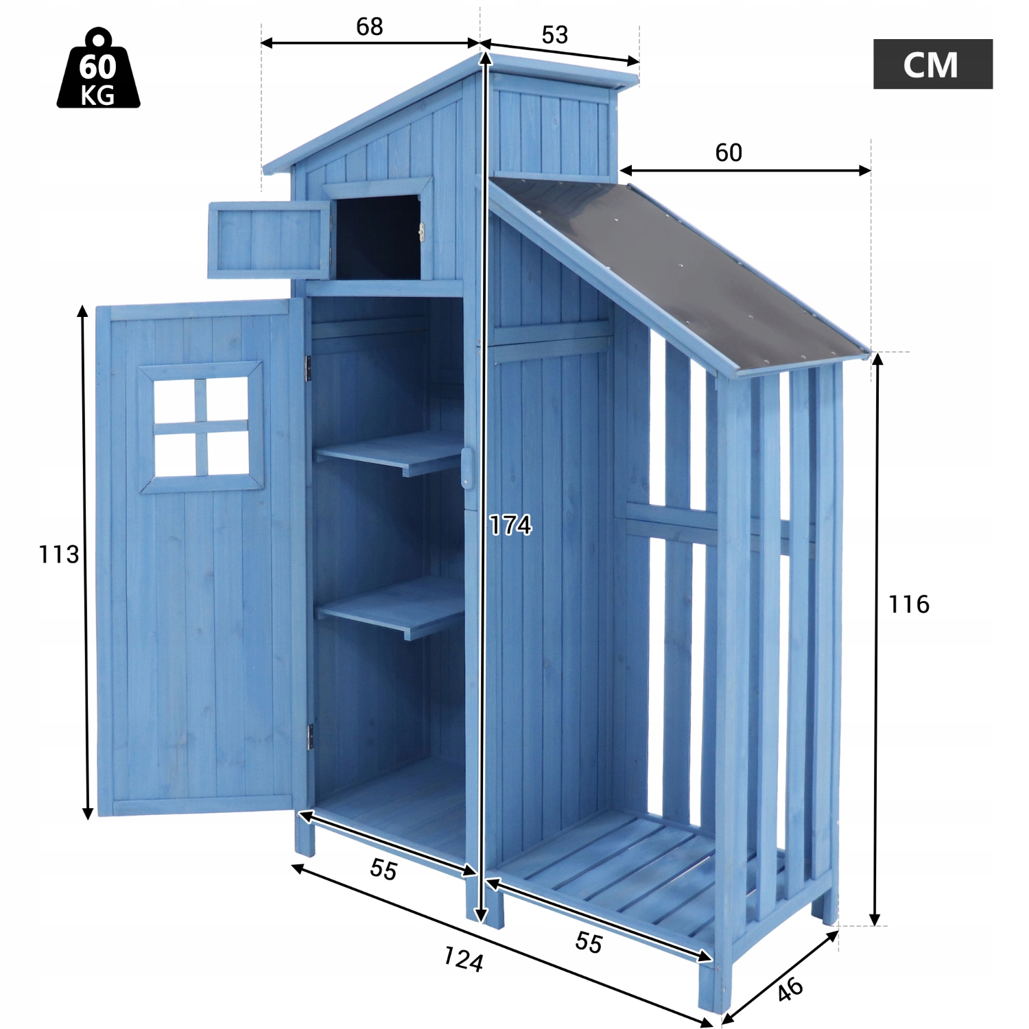 Садовий будинок, будинок для інструментів, садова шафа, 124x46 см, синій