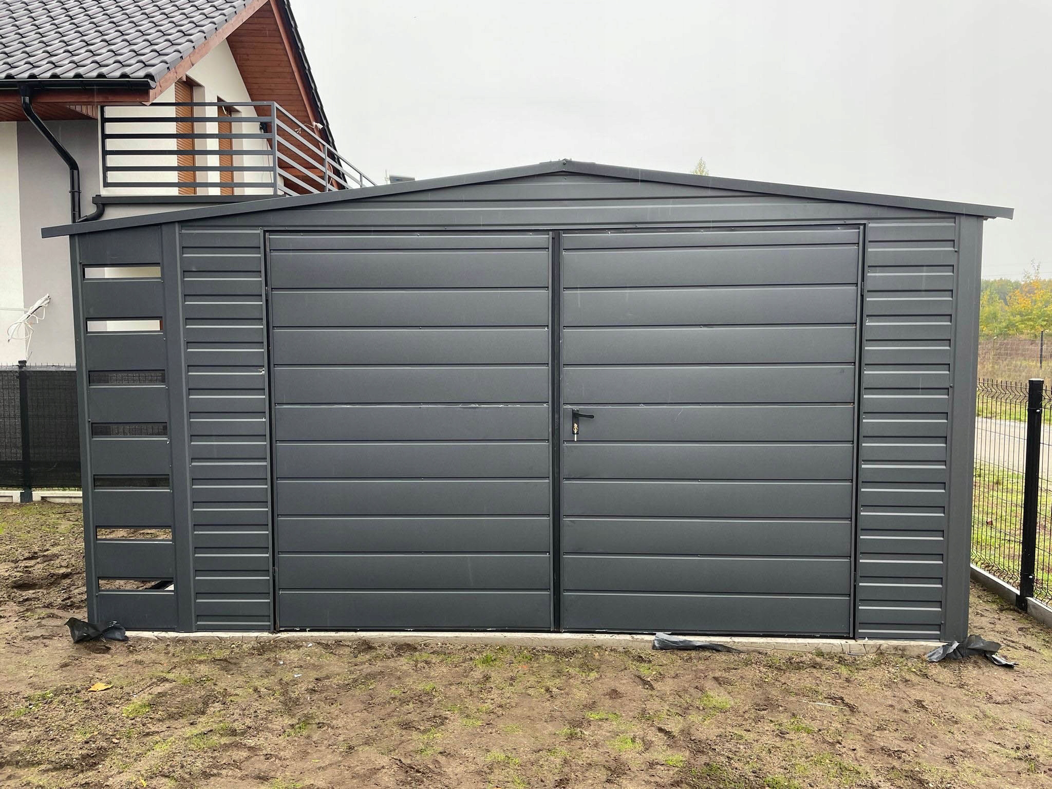 Садовий будинок 4х3 + навіс - антрацит Ворота двостулкові, фронтон