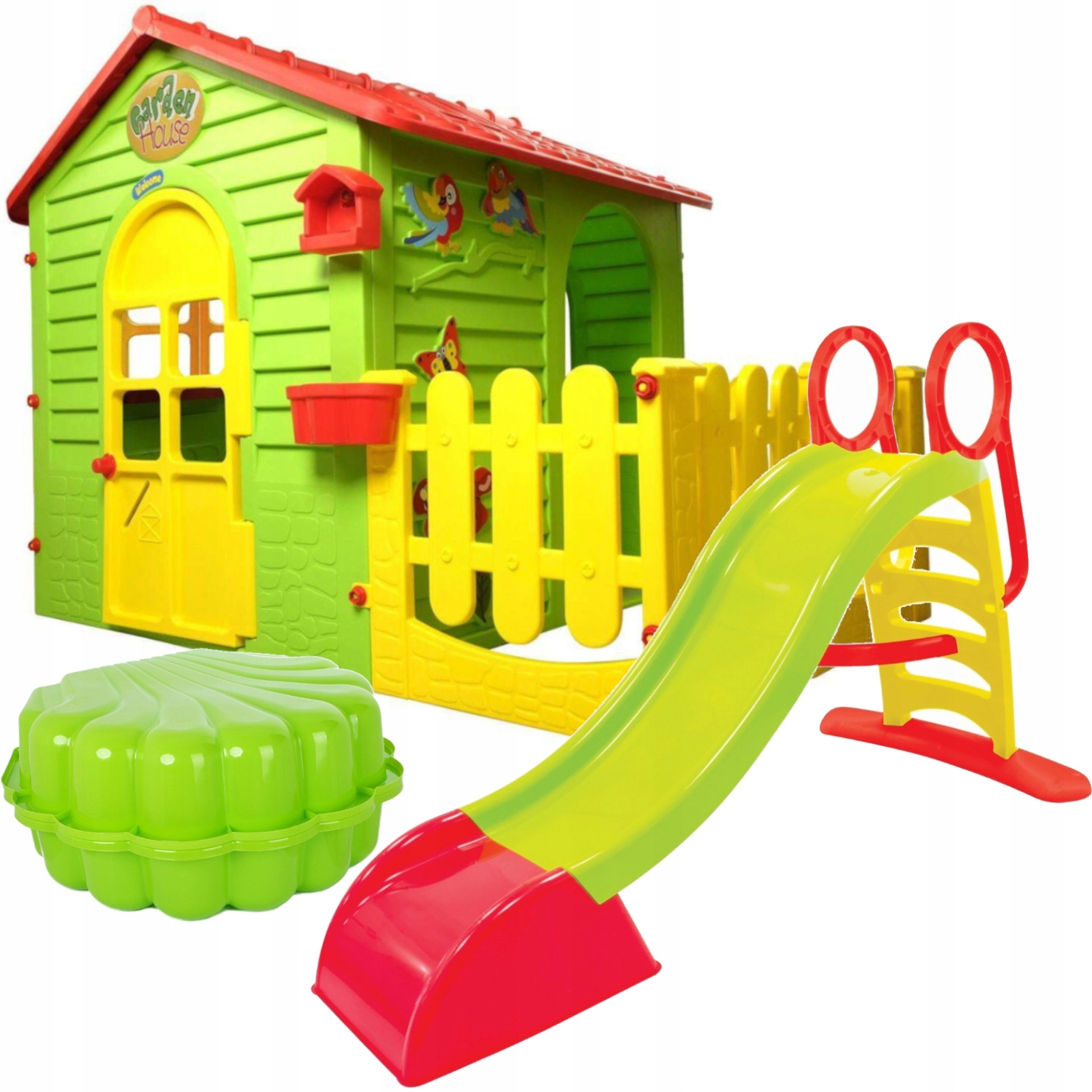 САДОВИЙ БУДИНОК З ПАРКАНОМ ГІРКА ПІСОЧНИЦЯ ІГРОВИЙ МАЙДАНОК 3В1 НАБІР