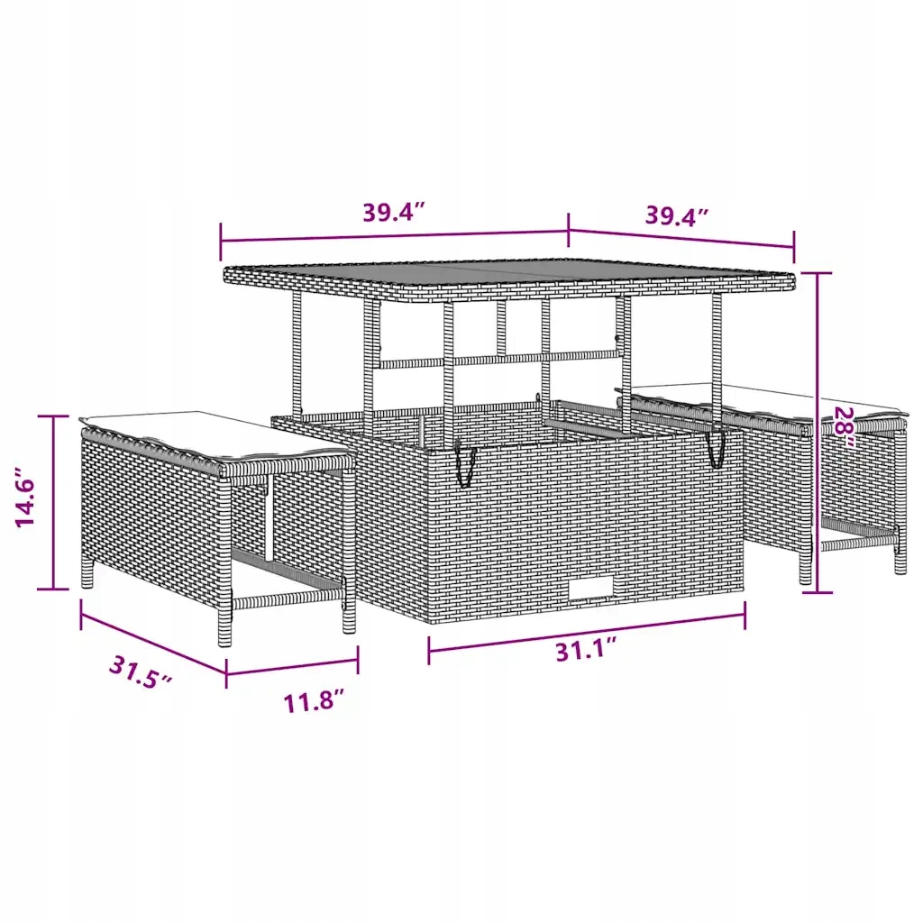 - Елегантний дизайн: матове чорне покриття та плетена текстура додають набору стильного вигляду, роблячи його центральною точкою будь-якого саду.