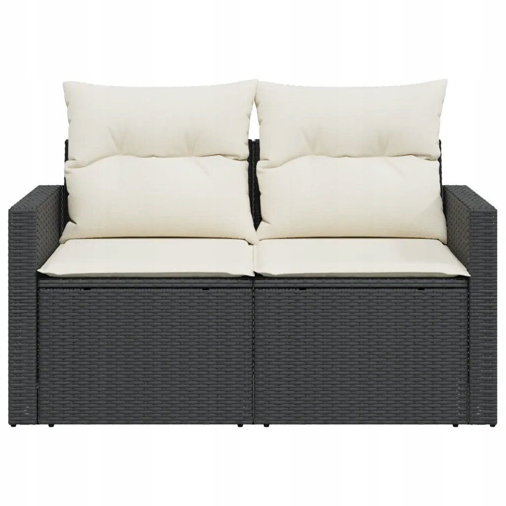 Садовий диван 2 -Пролетичний раттан ПЕ Чорний 124x62x69 см - кремова наволочка