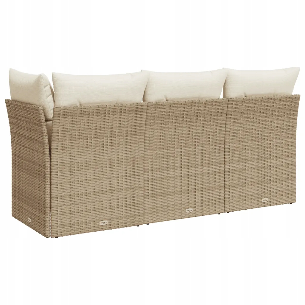 Садовий диван 3-місний з ротанга, бежевий, з подушками