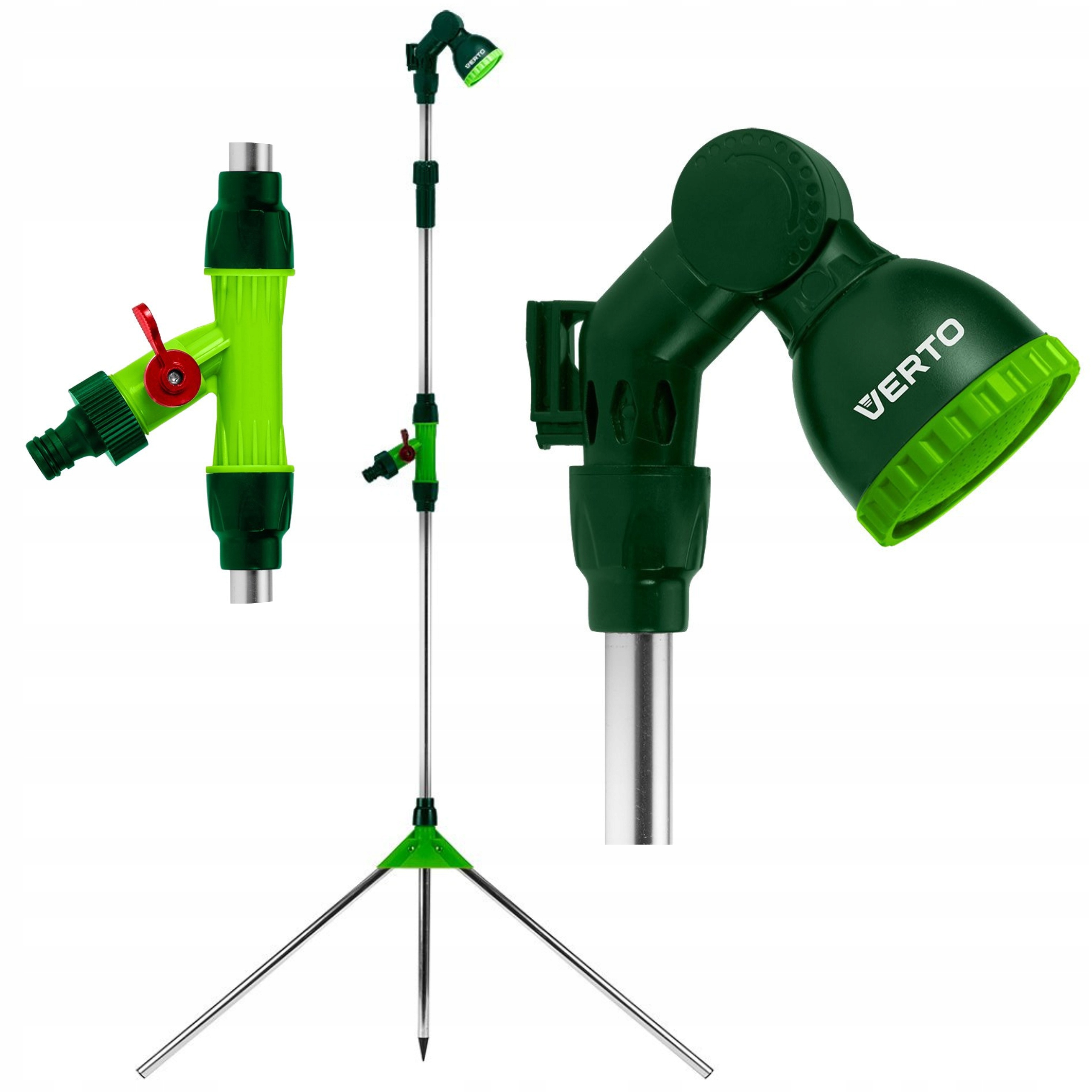 Verto Garden Dash 15G685 має блокаду потоку води з клапаном та універсальним з'єднанням для з'єднання шланга, що закінчується універсальним роз'ємом. Стабільна алюмінієва конструкція та елементи, виготовлені з ABS та PP. Садовий душ має загальну коригування висоти в діапазоні 160 - 230 див. Штатив робітника має шампур, який дозволяє стабілізацію в землі. Завдяки рухомої голови в 180 градусах можна використовувати функцію душу в будь -якій площині.