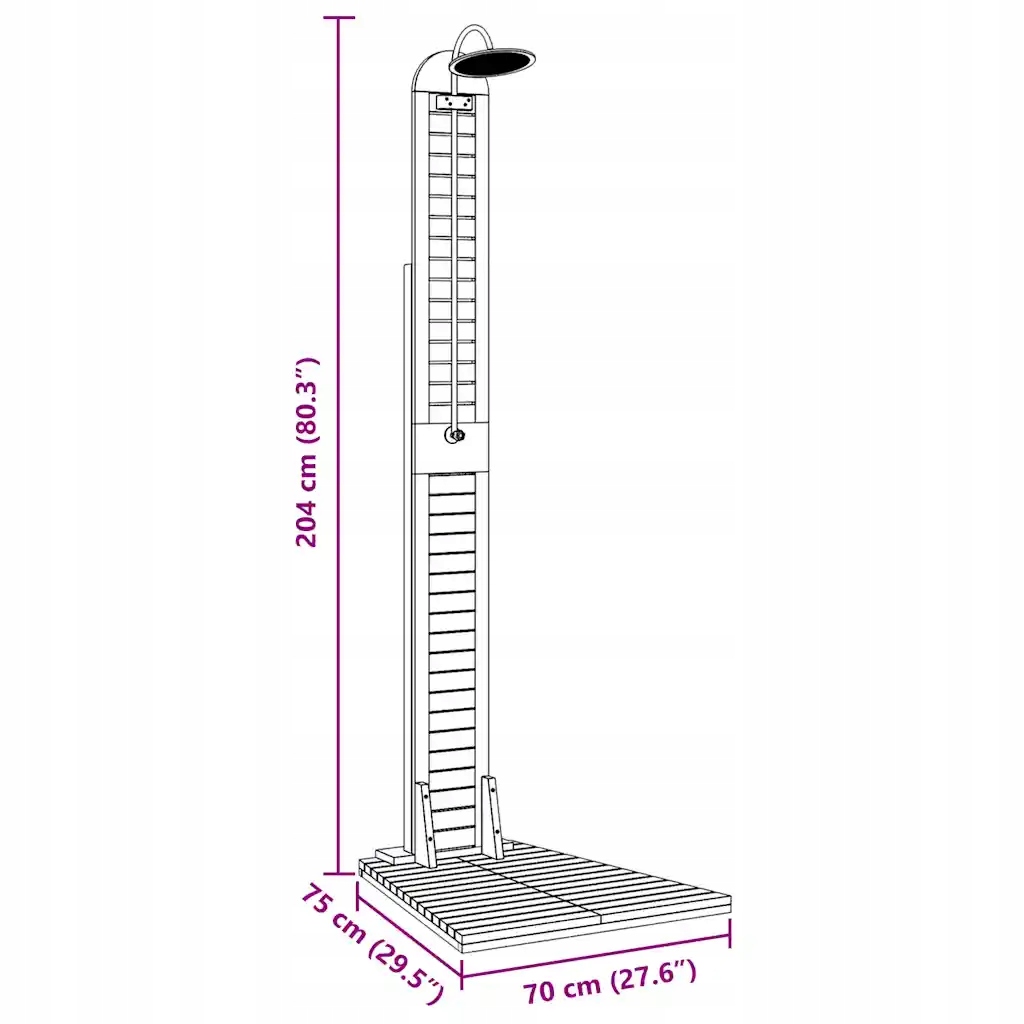 Садовий душ з тику та нержавіючої сталі 70x75x204 см