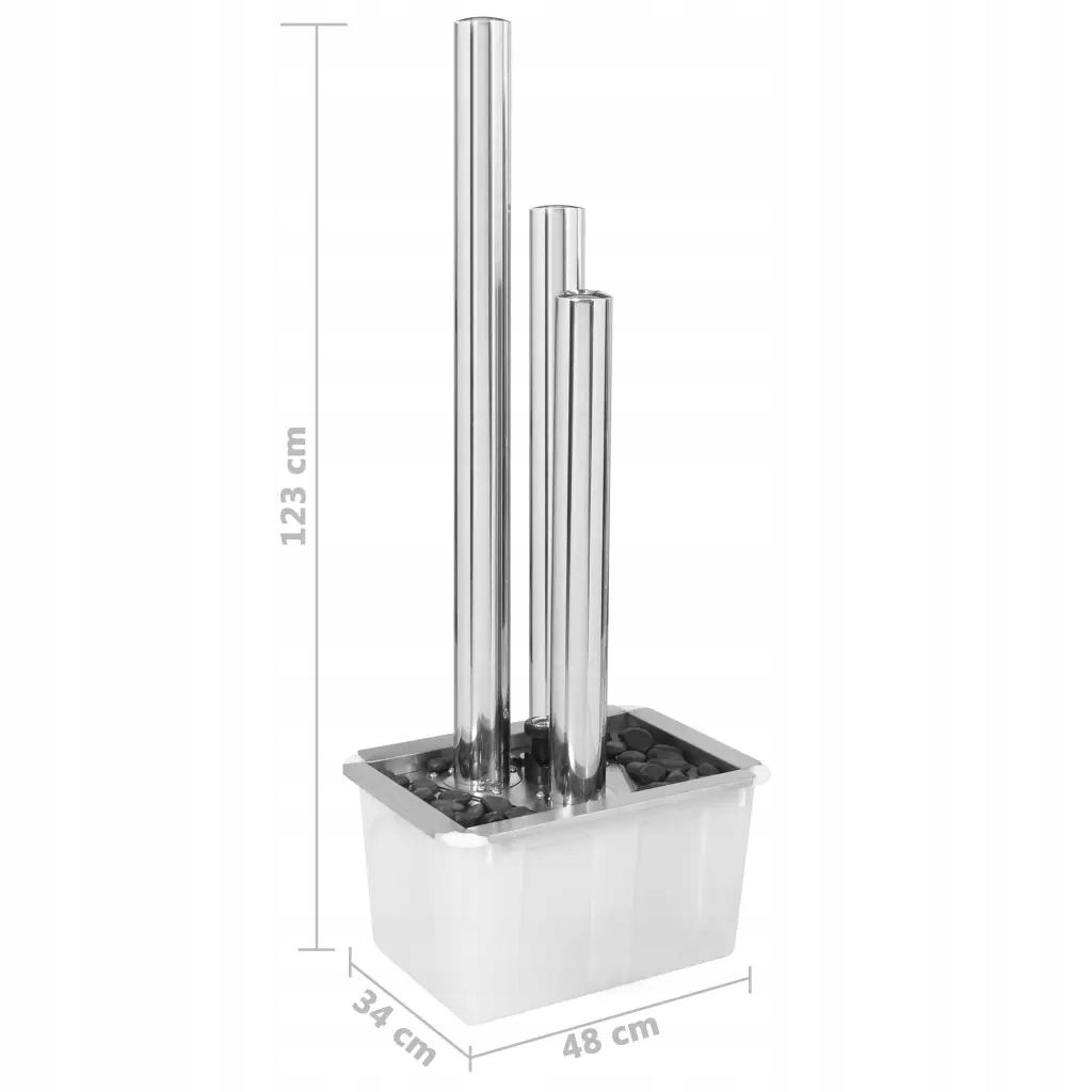 Наш блискучий садовий фонтан з трьома циліндрами оснащений світлодіодним та насосом. Це змінить ваш сад або терасу замість відпочинку для очей і вух. Садовий фонтан був розроблений, щоб гарантувати постійний, рівний потік води. Він оснащений пластиковою основою, яку можна закопнути в землю, щоб отримати бажаний ефект. Лоток з нержавіючої сталі, встановлений у верхній частині основи, прикрашений прикріпленими гальками. Водоспад постачається з усіма необхідними аксесуарами. Ви можете легко підключити його до прикріпленого водяного насоса. Він виготовлений з високоякісної 304 нержавіючої сталі з дзеркальним покриттям, завдяки якому він стійкий до хлорованої води та дуже міцного. Цей продукт вимагає складання.