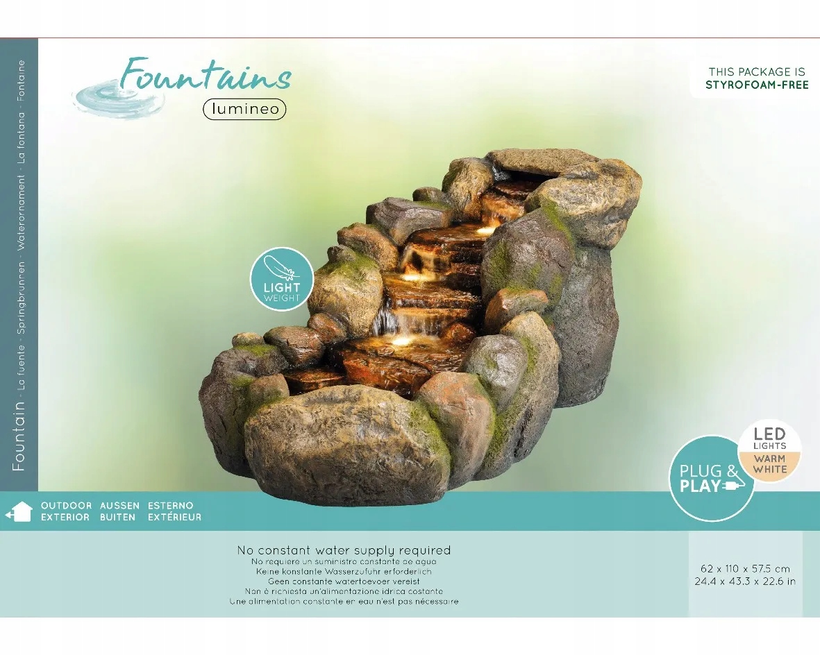 Візуально фонтан виглядає так, ніби зроблений зі справжнього каменю - і завдяки світлодіодному освітленню ви отримуєте щось унікальне і ефект набагато ефектніший.