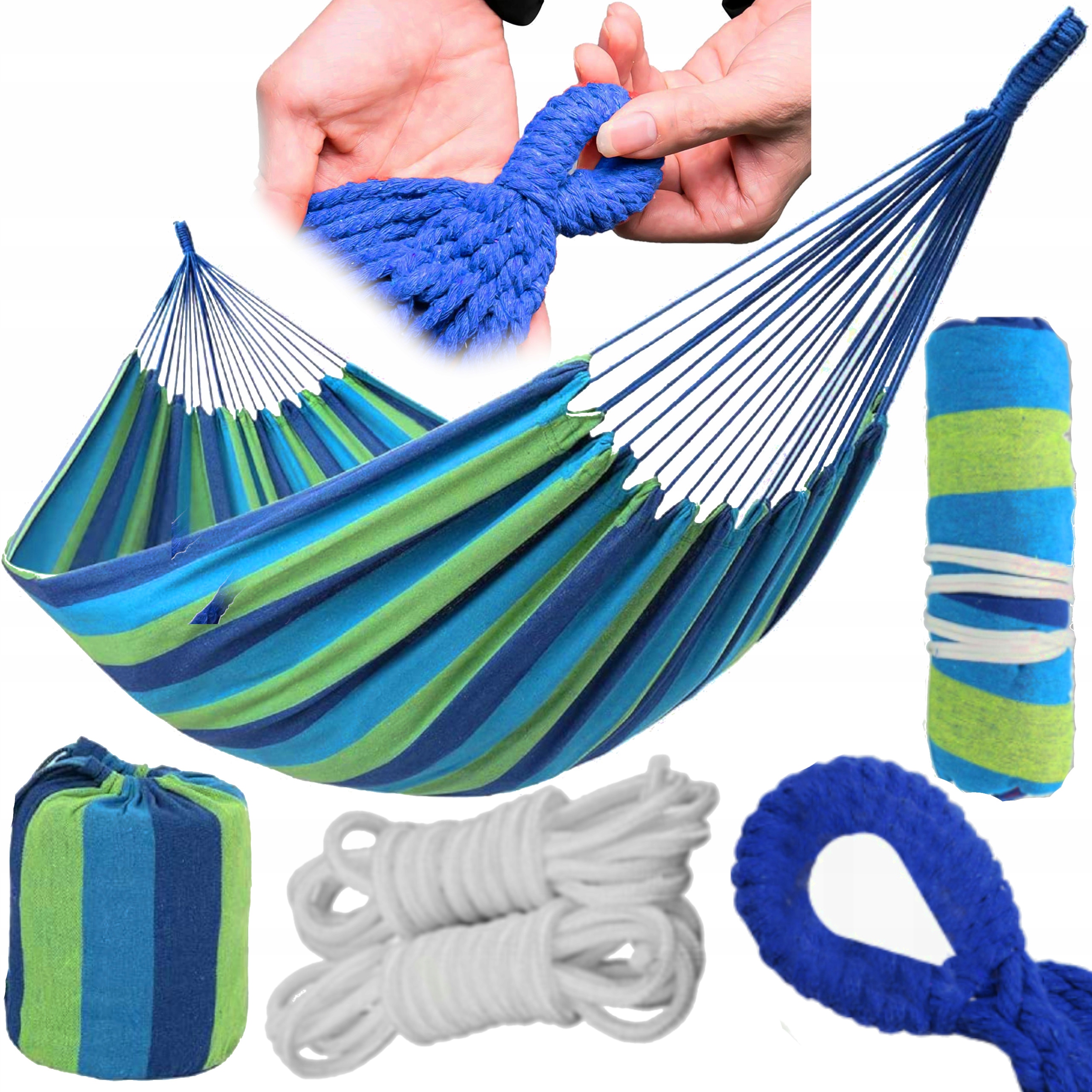 Гамак виготовлений із міцного матеріалу. Для виготовлення гамаків використовували щільну бавовну з невеликою кількістю поліестеру, як і товсті плетені мотузки на кораблях. Виріб міцний, але в той же час матеріал пропускає повітря, що робить ваш відпочинок надзвичайно приємним.