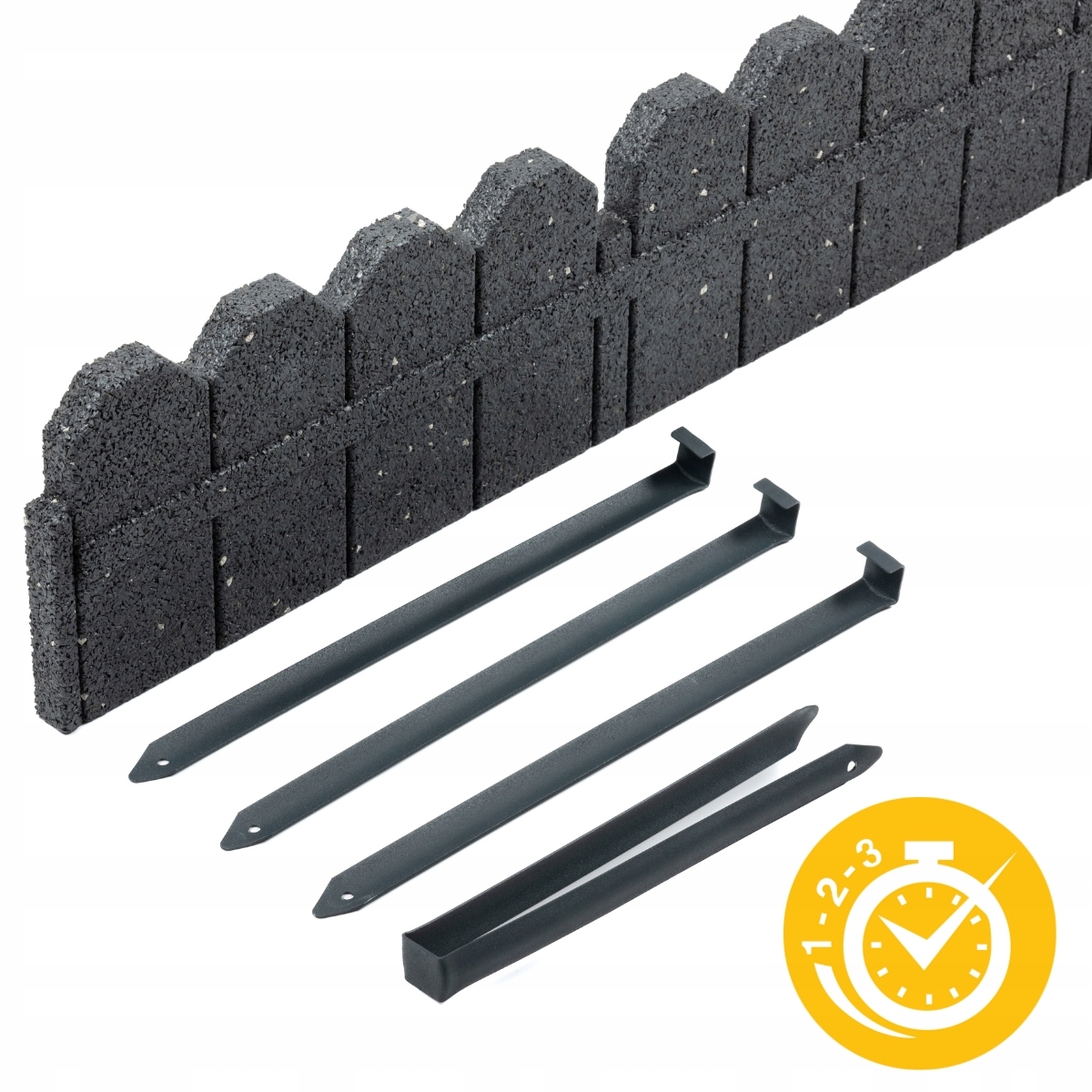 - Набір: 6x сірий край = 708 см завдовжки + 18 шт. Монтажні шпильки + 6 шт. Роз'ємів