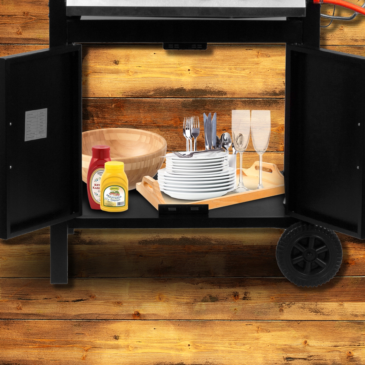 Крім того, гриль має шафу, що замикається, в якій ми можемо заховати аксесуари, забезпечуючи збереження візуального ефекту.