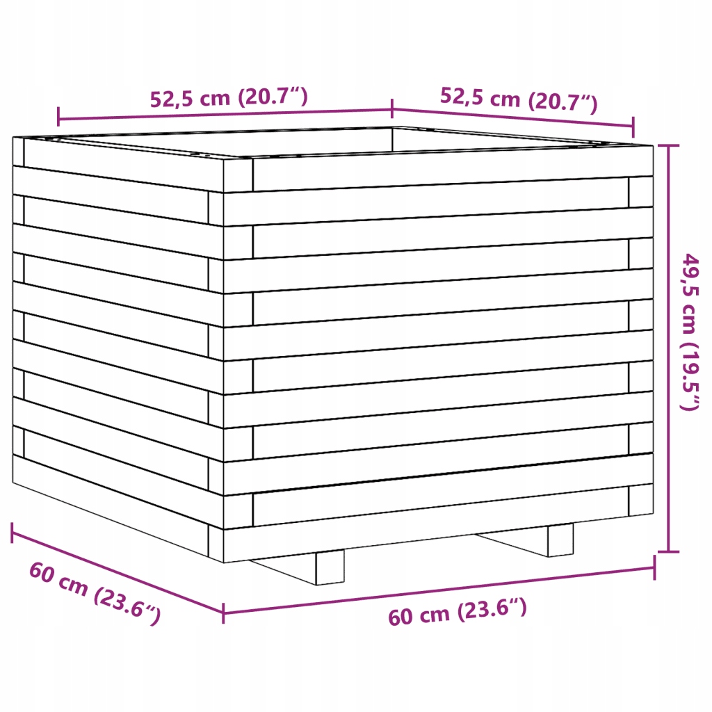Садовий горщик, 60x60x49,5 см, суцільна соснова деревина