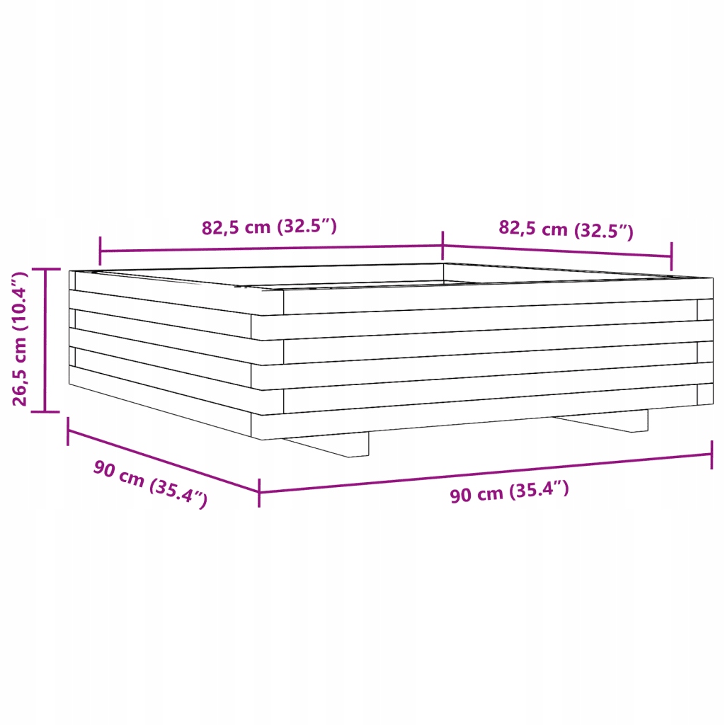 садовий горщик, білий, 90x90x26,5 см, суцільна сосна