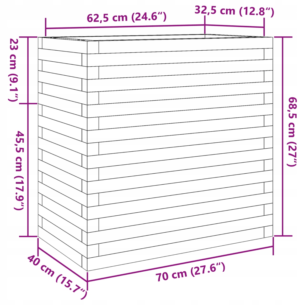 Горщик для квітів садовий, білий, 70x40x68,5 см, масив сосни