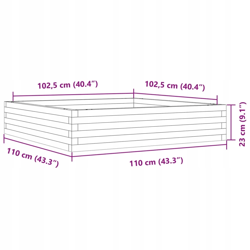 Садовий горщик для квітів 110х110х23 см, масив сосни