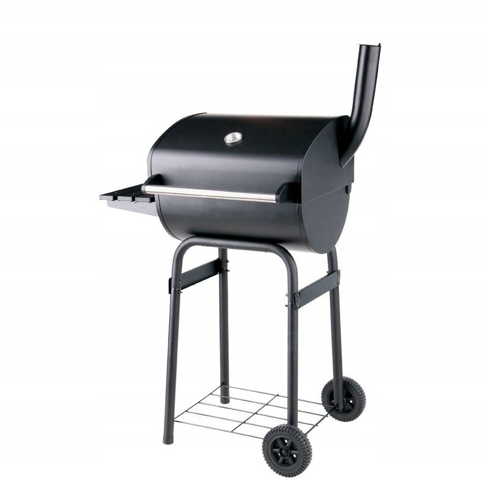 Гриль оснащений димоходом із кришкою, що замикається,сталевою полицею в нижній частині та боковою полицею для аксесуарів. Крім того, гриль має 2 колеса для зручного транспортування
