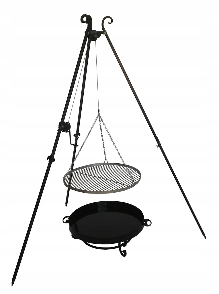 Має дві складні ніжки, що значно полегшує транспортування. А розгортання та складання штатива займає лише мить і є дуже простимзавдяки використаним гвинтам. Завдяки спеціальній котушці регулювати решітку дуже просто і зручно, а тому ми повністю контролюємо процес смаження. Крім того, штатив має елегантні прикраси, завдяки чому він чудово виглядає, наприклад, у саду.